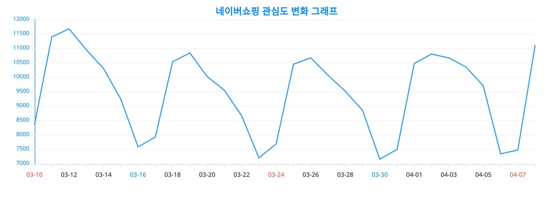 이번 분석을 통해 얻어진 네이버쇼핑에 대한 일간 변화 추이 차트는, 네이버쇼핑에 대한 관심이 어떻게 변화했는지를 생생하게 드러낸다.