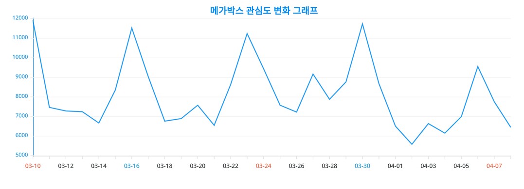이 차트는 시간에 따른 메가박스의 인기 변동성을 직관적으로 나타내고 있다.