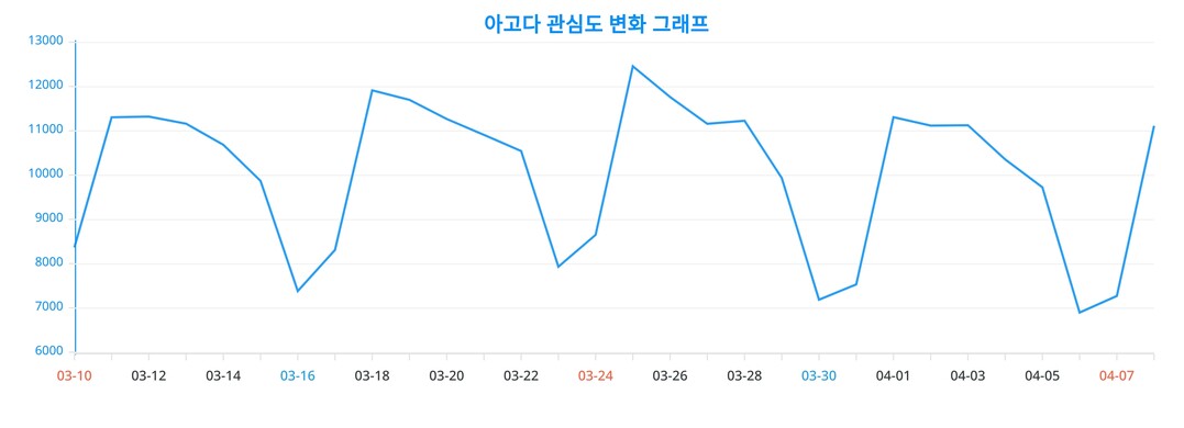 아고다의 연령별 관심도 분포는 랭키파이에서 수집한 방대한 빅데이터를 분석하여 얻은 결과이며, 이를 통해 아고다에 대한 전반적인 사회적 관심과 선호도를 파악할 수 있다.