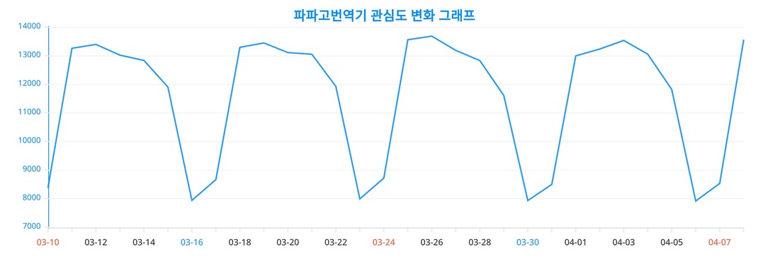 파파고번역기의 연령별 관심도 분포는 랭키파이에서 수집한 방대한 빅데이터를 분석하여 얻은 결과이며, 이를 통해 파파고번역기에 대한 전반적인 사회적 관심과 선호도를 파악할 수 있다.