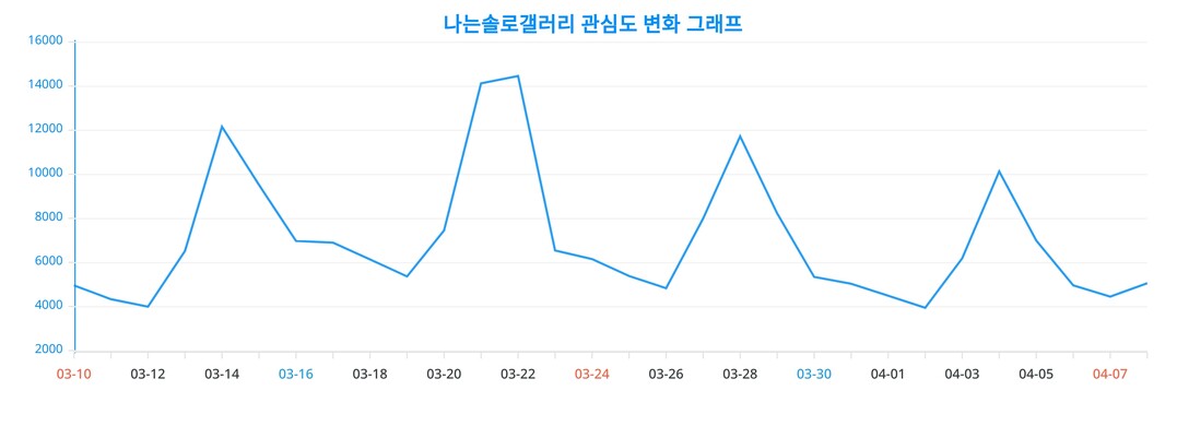 이번 분석을 통해 얻어진 나는솔로갤러리에 대한 일간 변화 추이 차트는, 나는솔로갤러리에 대한 관심이 어떻게 변화했는지를 생생하게 드러낸다.