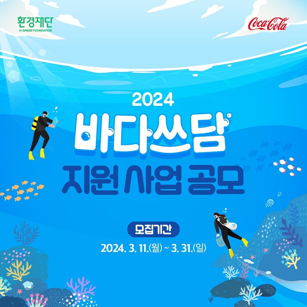 [CWN 정수희 기자] 한국 코카콜라가 환경재단과 함께 해양 환경 보호 활동인 '바다쓰담 캠페인'에 참여할 팀(단체 포함)을 모집한다고 11일 밝혔다.