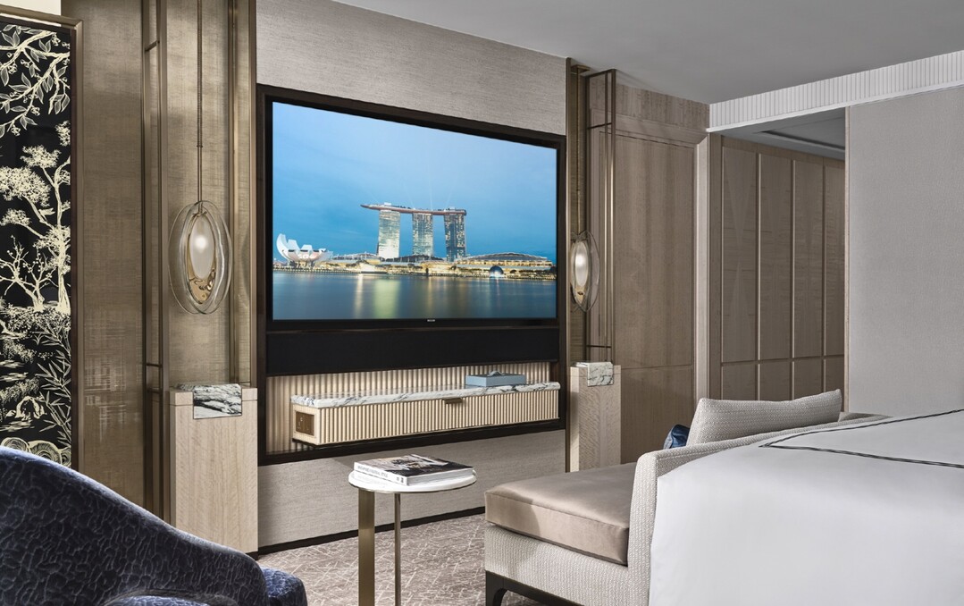 | ▲마리나 베이 샌즈 샌즈 프리미어룸에 설치된 '75형 호텔 TV'. 사진=삼성전자 |