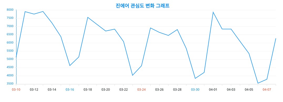 이 차트는 진에어의 시간에 따른 인기 변동성을 직관적으로 이해할 수 있는 지표이다.