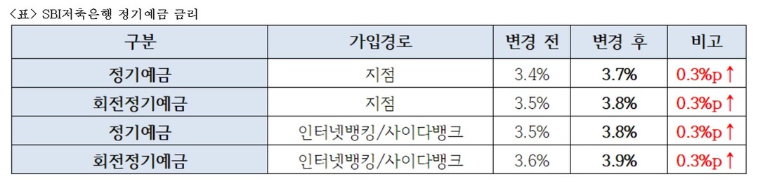 CWN(CHANGE WITH NEWS) - SBI저축은행, 정기예금 금리 0.3%p 인상…최고 3.9%