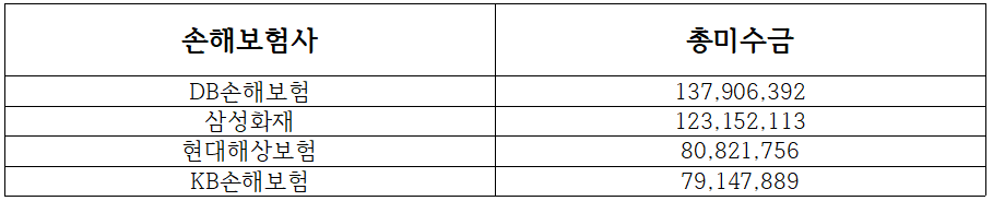 약관상 손해보험사는 수리비 청구서를 받은 뒤 10일 이내에 정비 대금을 지급해야 한다. 정비 공임에 따라 대금 지급 시점은 조금씩 달라지며, 보험사가 수리비 일부를 감액하거나 재산정하는 경우도 있다. 그러나 이번 DB손해보험의 미지급 건은 몇 달씩 지급이 이뤄지지 않고 있는 상황이다. 올 한 해 미수금 총액이 1억 원을 넘겼다.