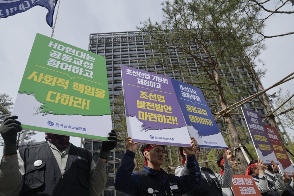 17일 HD현대의 조선 계열사인 HD현대중공업·HD현대삼호·HD현대미포 노조들은 확정된 공동요구안을 회사 측에 전달한다고 밝혔다. 이와 함께 HD현대 본사 앞에서 HD조선3사 공동투쟁 선포 기자회견을 열기도 했다.
