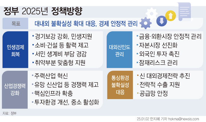 정부가 새해 경제정책 방향으로 글로벌 통상환경 불확실성 속에 트럼프 정책 시나리오별로 행동 계획을 준비하고 있다고 밝혔다.