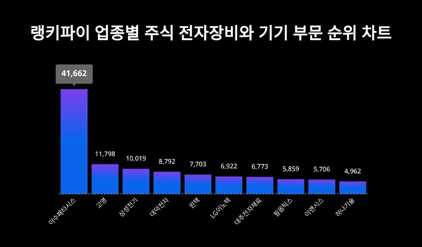 | ▲출처: 랭키파이 업종별 주식 전자장비와 기기 부문 트렌드 테이블 |