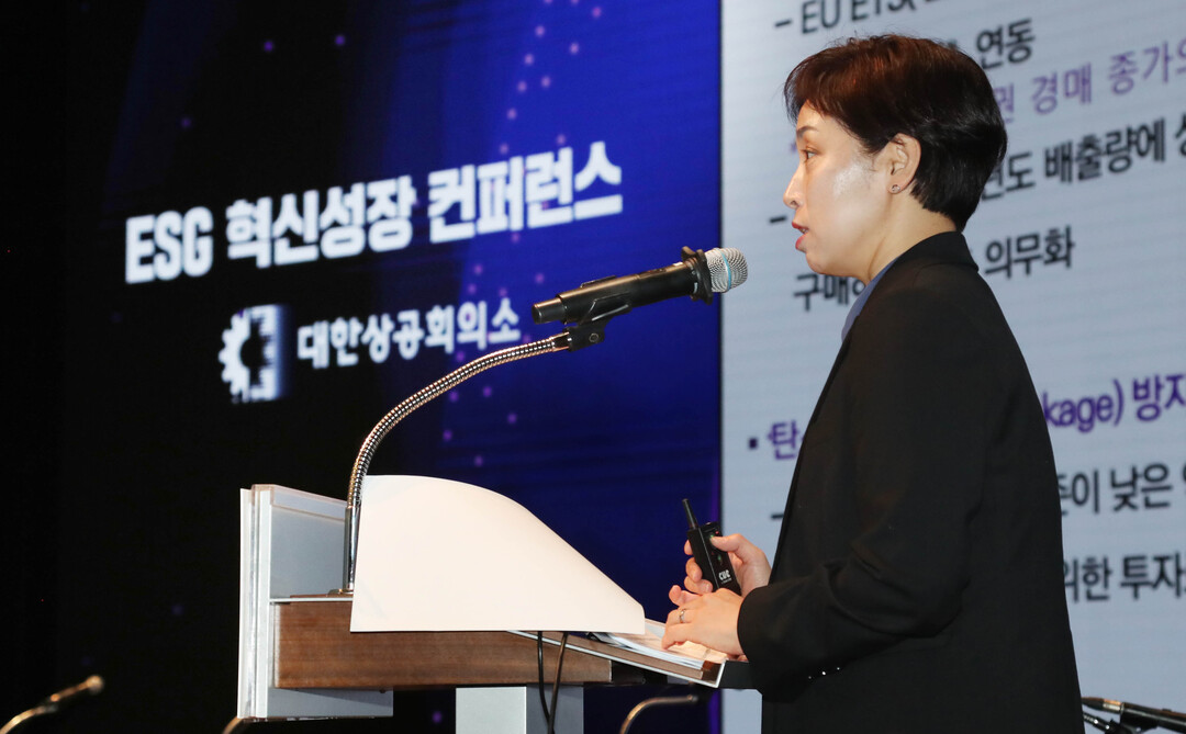 | ▲19일 'ESG 혁신성장 컨퍼런스'에서 양은경 KOTRA 실장이 연사로 나섰다. 사진=대한상의 |