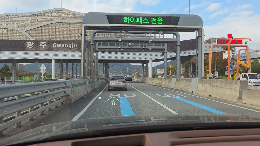 고속으로 쭉 뻗은 도로 위에서 아이오닉 9은 진정한 실력을 발휘했습니다. 묵직하면서도 안정적인 차체는 마치 레일 위를 달리는 듯한 착각을 불러일으킬 정도로 흔들림 없이 차선을 유지했고, 시속 100km를 훌쩍 넘어서도 풍절음이나 노면 소음은 거의 느껴지지 않아 운전자와 동승자 모두 최상의 정숙성을 만끽할 수 있었습니다.