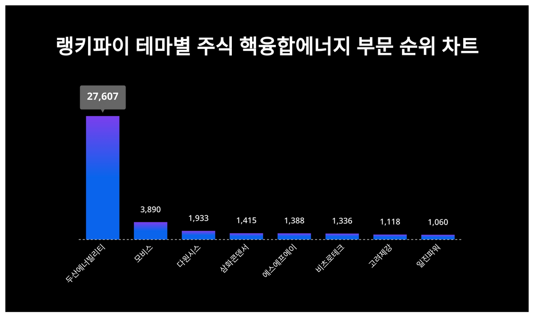 [CWN 김해남 기자] 랭키파이가 발표한 2024년 3월 2주차 트렌드지수 분석 결과 테마별 주식 핵융합에너지 부문 트렌드지수에서 두산에너빌리티 주가가 1위를 차지했다.