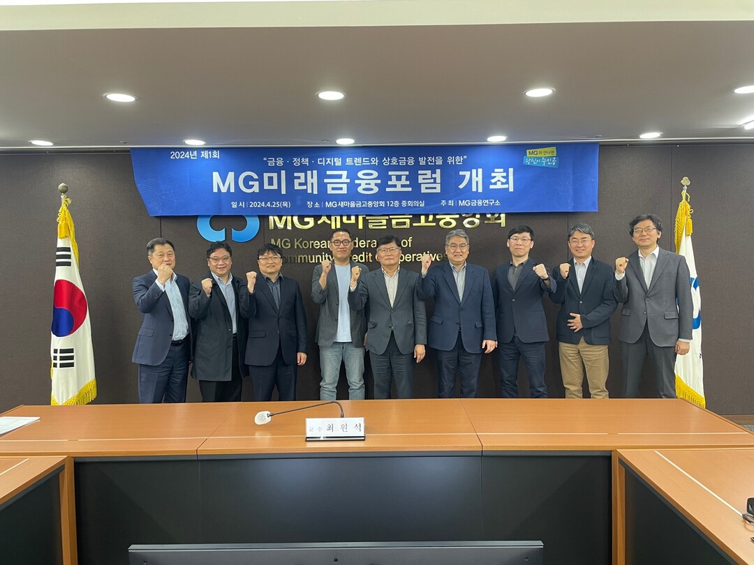 | ▲MG미래금융포럼 참석자들이 포럼 시작 전 기념촬영을 하고 있다. (좌측기준 5번째, MG미래금융포럼 위원장 최원석 교수). 사진=새마을금고중앙회 |
