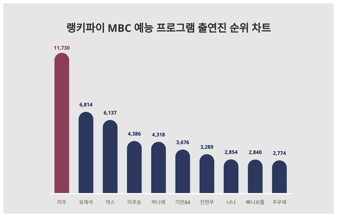 [출처: 랭키파이 MBC 예능 프로그램 출연진 트렌드 지수 분석 결과]