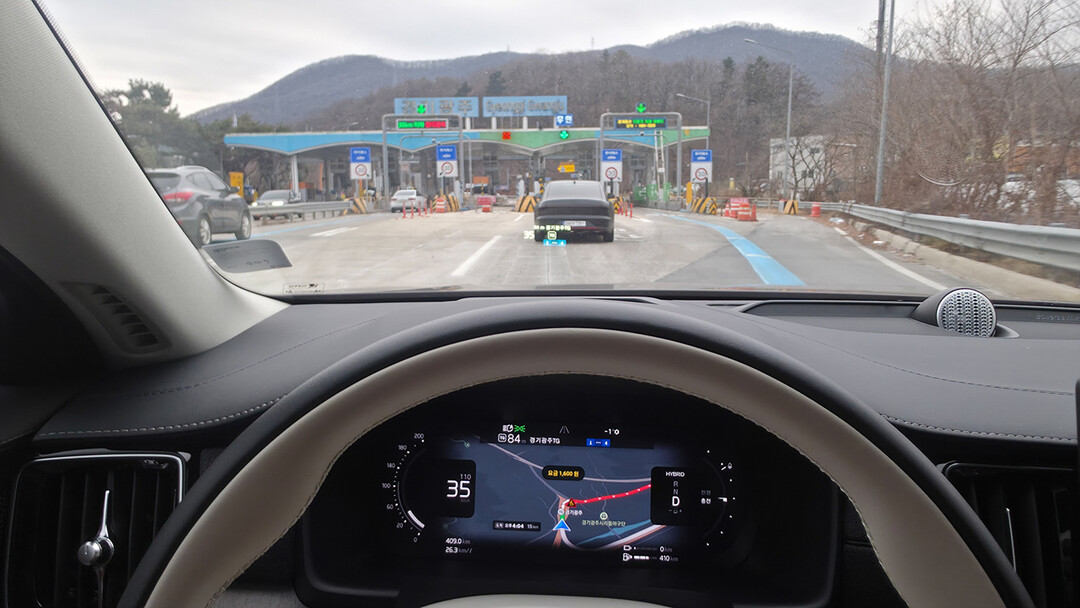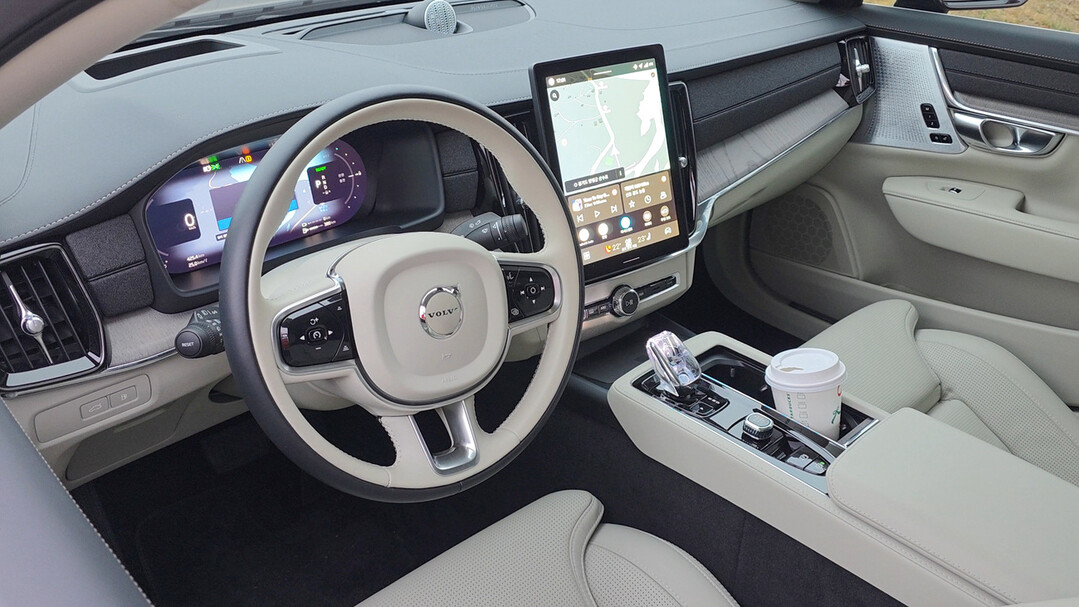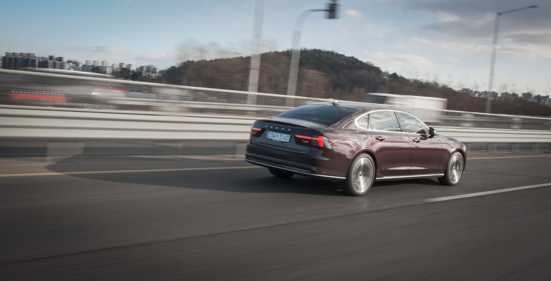 도로 위로 차를 움직이자 S90 T8은 플래그십 세단다운 여유롭고 부드러운 승차감을 보여주었습니다.
