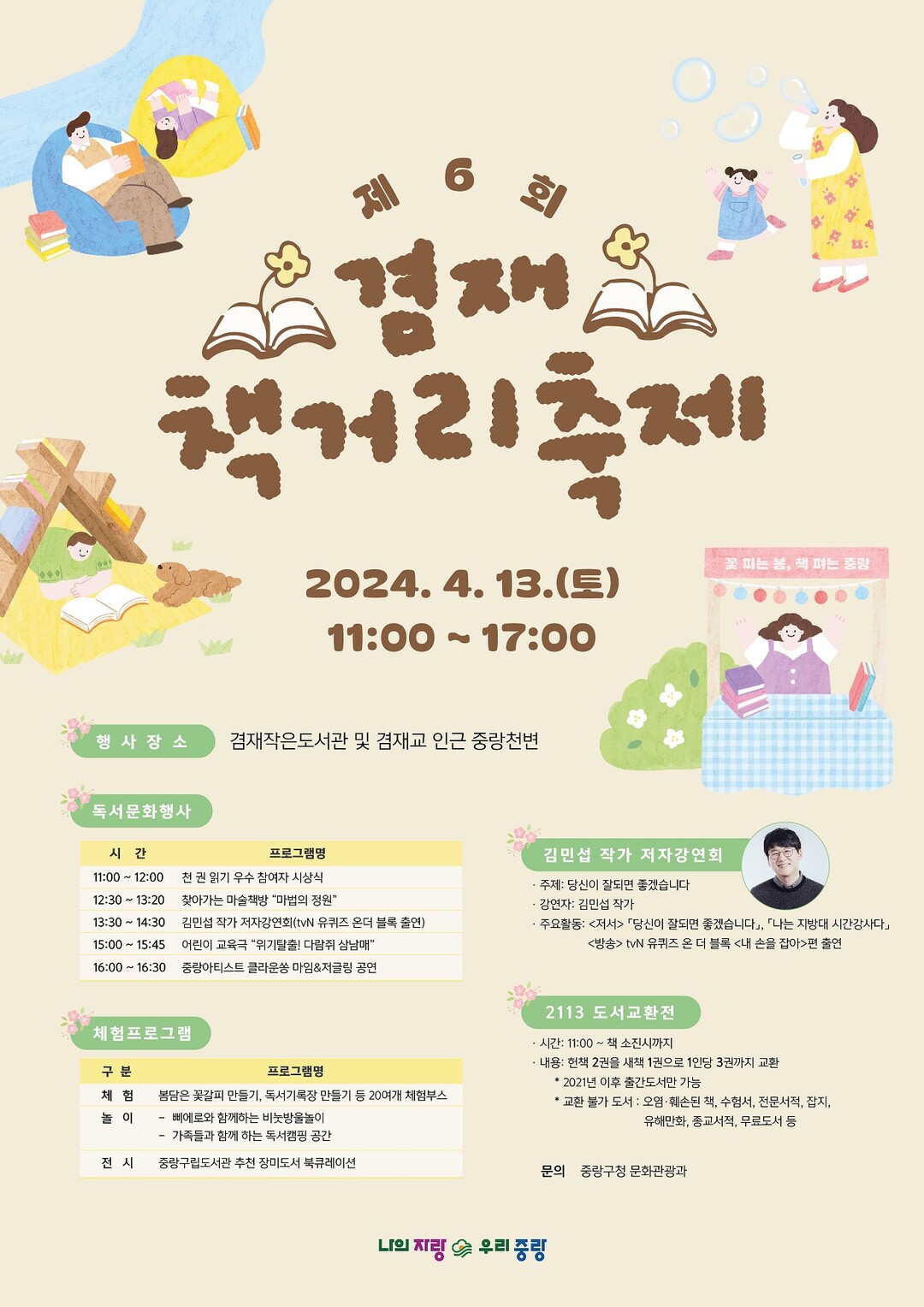 중랑구는 오는 13일 '꽃 피는 봄, 책 펴는 중랑'을 주제로 '제6회 겸재책거리 축제'를 개최한다.