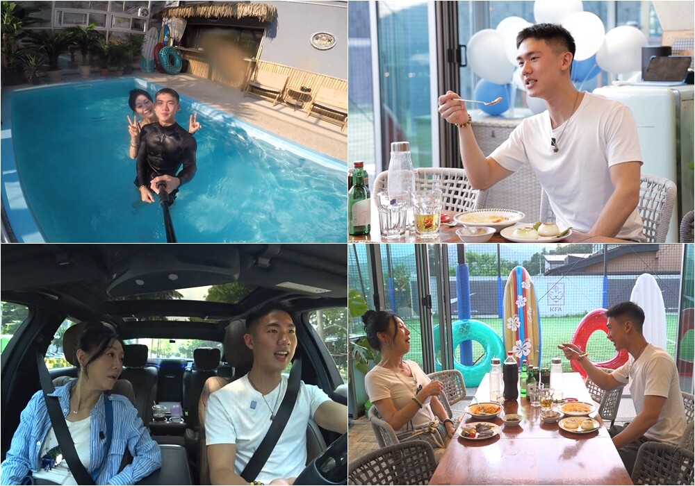 설렘 가득한 표정의 방은희는 수영장에서 아들과 함께 물놀이를 즐기고, 서로 사진을 찍어주는 등 행복한 시간을 보낸다.