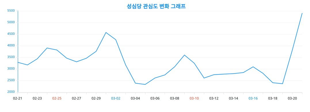 [CWN 김해남 기자] 랭키파이가 2024년 3월 22일에 진행한 인기 트렌드 성심당에 대한 성별 및 연령별 관심도 분석 결과가 주목을 받고 있다.