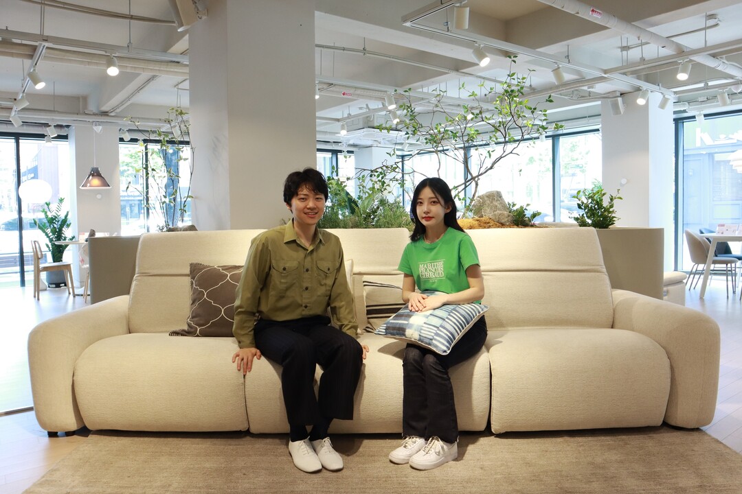| ▲ 리바트토탈 강남 매장에서 고객들이 소파 신제품 '더유닛'을 체험하고 있는 모습 사진=현대백화점그룹 |