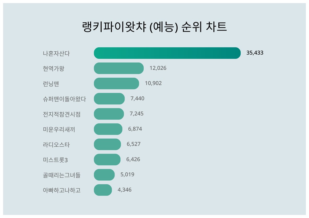 | 3 | 런닝맨 | 10,902 | 11,358 | -456 | -4.0% |