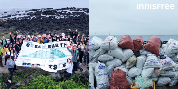 이니스프리는 플로깅 키트와 펌프를 제외한 전체 유리 용기 중 60%가 PCR 유리 소재로 이루어진 ‘그린티 씨드 히알루론산 세럼 대용량 [지구의달 에디션]’을 비롯한 주요 제품을 후원했다.