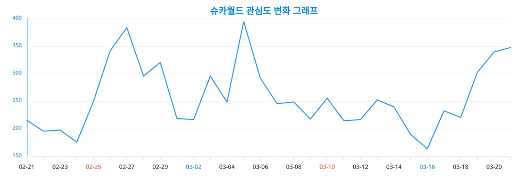 이 차트는 슈카월드의 시간에 따른 인기 변동성을 직관적으로 이해할 수 있는 지표이다.