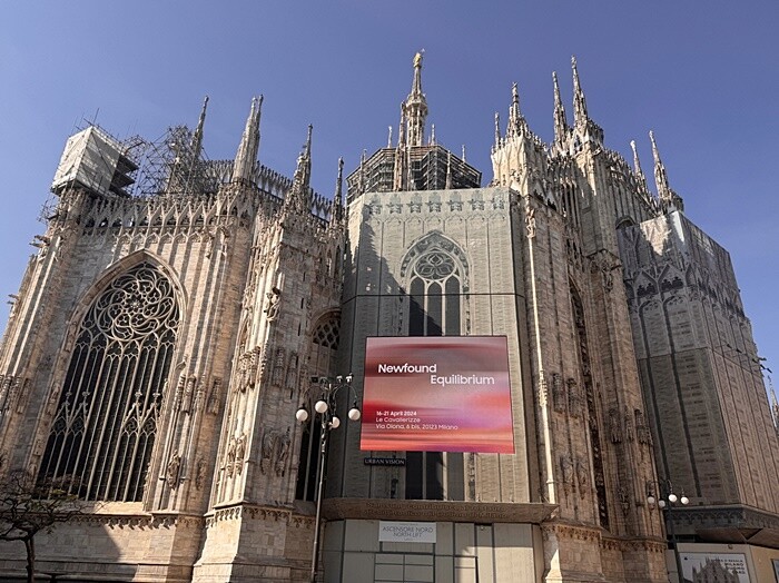 | ▲밀라노 두오모 성당 옥외광고 전광판을 장식한 삼성전자 디자인 전시 '공존의 미래'. 사진=삼성전자 |