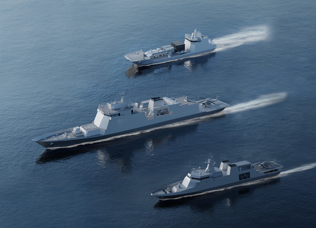 | ▲ HD현대중공업이 페루로부터 수주한 3400톤급 호위함(가운데), 2200톤급 원해경비함(아래), 1400톤급 상륙함의 조감도. 사진=HD현대중공업 |