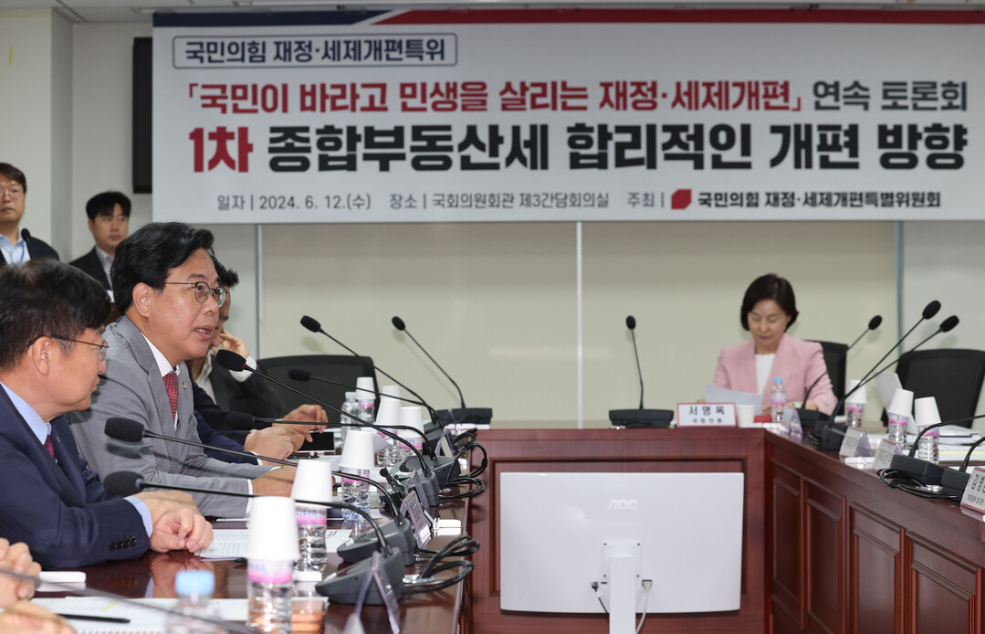 정점식 정책위의장은 "지난 정권이 세금으로 집값을 잡겠다며 징벌적 과세를 한 결과 1가구 1주택, 중산층과 연금 생활자에게 세금 폭탄이 떨어졌다"며 "실거주 주택보유자 세부담을 덜고, 다주택자들과 세 부담 형평성도 고려해야 한다. 조세 원칙에 맞게 종부세 전반을 종합적이고 합리적으로 검토해야 할 때"라고 했다.