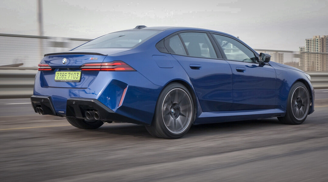 전면부의 거대한 키드니 그릴과 공격적인 M 전용 범퍼는 도로 위에서 시선을 압도하는 존재감을 뿜어냅니다. 멀리서도 '아, 이건 M5다!' 하고 외치는 듯한 강렬함이 느껴지죠.