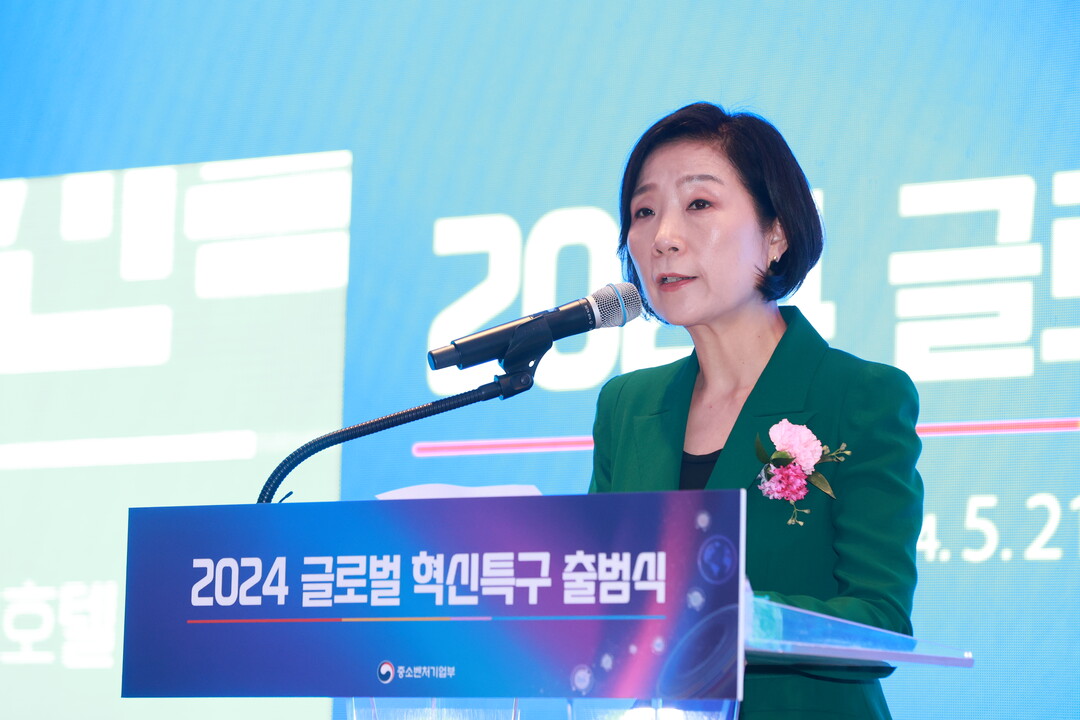 | ▲ 오영주 장관이 21일 서울 중구 롯데호텔에서 열린 '2024글로벌 혁신특구 출범식'에서 인사말을 하고 있다. 사진=중소벤처기업부 |