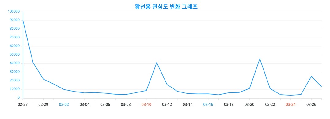 이 차트는 시간에 따른 황선홍의 인기 변동성을 직관적으로 나타내고 있다.