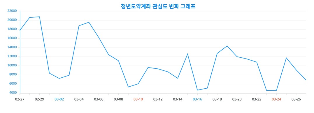 이 차트는 청년도약계좌의 시간에 따른 인기 변동성을 직관적으로 이해할 수 있는 지표이다.