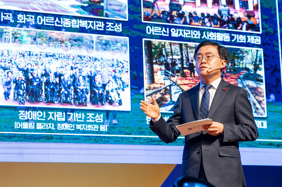 | ▲ 진교훈 강서구청장이 구정 핵심 사업을 소개하고 있다. 사진=강서구 |