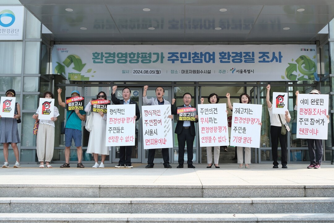시위에 나선 백 의장을 비롯해 마포구의회 의원들과 마포소각장추가백지화투쟁본부 등도 '주민 참여 환경질 조사'라는 말과는 모순되게 진행됐다며 환경질 조사의 무효를 주장하는 양상이다.