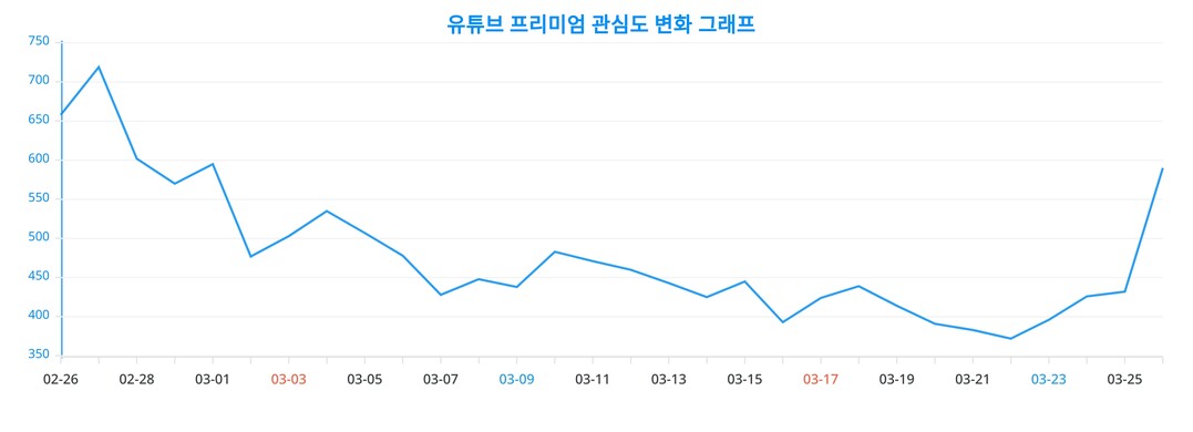 이 차트는 유튜브 프리미엄의 시간에 따른 인기 변동성을 직관적으로 이해할 수 있는 지표이다.