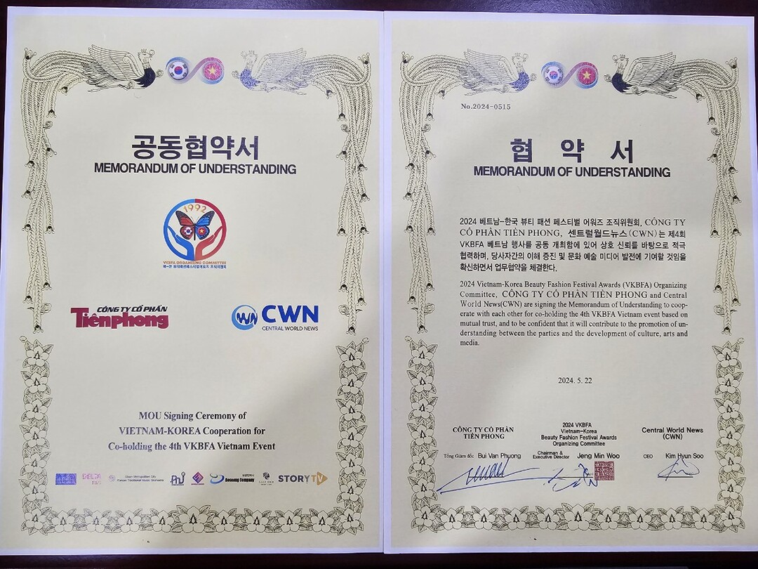 이번 MOU를 통해 오는 8월 베트남 하노이에서 열릴 예정인 ‘2024 제4회 베트남-한국 뷰티 패션 페스티벌 어워즈’의 성공적인 개최를 위해 힘을 모으기로 했다.