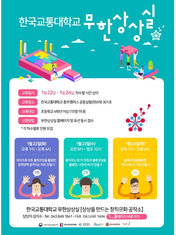 프로그램 신청은 한국교통대 무한상상실 홈페이지 및 전화(043-849-1641)를 통해 선착순으로 접수되며 무료로 진행된다.