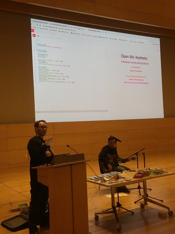 프로세싱(Processing)은 '자유롭게 사용할 수 있는 컴퓨터 프로그래밍 언어(freely-available computer programming language)'다. 코드 한 줄 또는 두 줄만 있으면 화면에 이미지를 만들 수 있어 첫 학습 도구 프로그래밍으로 이상적이라고 주최측은 말했다.