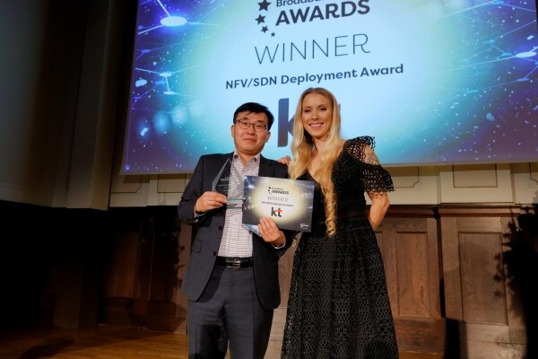 KT는 25일(한국 시각) 독일 베를린에서 진행된 ‘BroadBand World Forum(이하 BBWF) Awards 2018’에서 ‘최우수 가상화 기술 적용상’과 ‘최우수 인공지능 및 자동화 기술상’을 수상했다고 밝혔다.