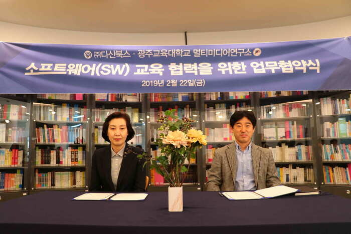 다산북스(대표 김선식)와 광주교육대학교 멀티미디어연구소(소장 김정랑)가 22일 소프트웨어 교육 협력을 위한 업무협약을 체결했다.