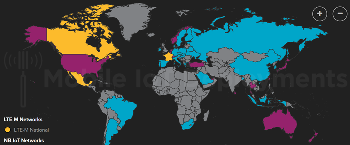 2018년 4분기에 유럽에서는 알티스(Altice, 포르투갈, NB-IoT), 오렌지(Orange, 프랑스 및 루마니아, LTE-M), 텔레노어 그룹(Telenor Group, 노르웨이, NB-IoT, LTE-M), 텔리아(Telia, 에스토니아, NB-IoT), SFR (프랑스, NB-IoT), 스위스콤(Swisscom, 스위스, NB-IoT, LTE-M) 및 보다폰(Vodafone, 몰타; NB-IoT)이, 아시아에서는 그라민폰(Grameenphone, 방글라데시, NB-IoT), 청와(Chungwa, 대만, LTE-M), 텔콤셀(Telkomsel, 인도네시아, NB-IoT), 메가폰(Megafon) 및 MTS (러시아, NB-IoT) 등이 서비스를 출시하는 한편 버라이즌(Verizon)과 스파크(Spark)도 북미와 뉴질랜드에서 각각 LTE-M을 출시했고 STC는 사우디아라비아에서 NB-IoT를, 텔레포니카(Telefonica는 아르헨티나에서 LTE-M을 출시했다.