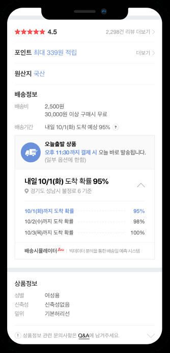 배송 시뮬레이터 기능은 기존 상품 배송 데이터 외에도 결제시간·출고지·배송지 등을 종합 분석해 더욱 정확한 배송 일자를 예측할 수 있다는 점이 특징이다.