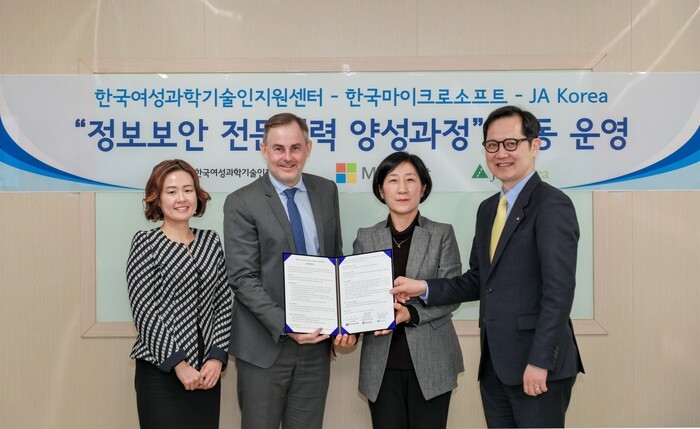 한국여성과학기술인지원센터(소장 한화진, 이하 WISET)는 8일 오전 10시 30분에 WISET 회의실에서(서울 강남구) 한국마이크로소프트(MS), 제이에이코리아(JA Korea)와 정보보안 전문 여성인력 양성과정 운영을 위한 업무협약을 체결했다.
