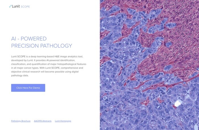 이번 연구에 루닛은 자체 개발한 인공지능 소프트웨어, 루닛 스코프(Lunit SCOPE)를 활용했다. 루닛 스코프는 딥러닝 기술을 활용한 분석 툴로, 디지털화 된 암 조직 영상을 분석해 보여준다. 한 명의 환자(슬라이드) 분석에 걸리는 5분 이내로, 단시간 내 객관적인 분석이 가능하다. 기존 유전체분석 등이 3주 이상 소요되는 점을 감안하면 획기적으로 기간이 단축된 셈이다. 루닛 스코프는 AACR 기간 동안 루닛 부스(#1744)에서 소개된다.