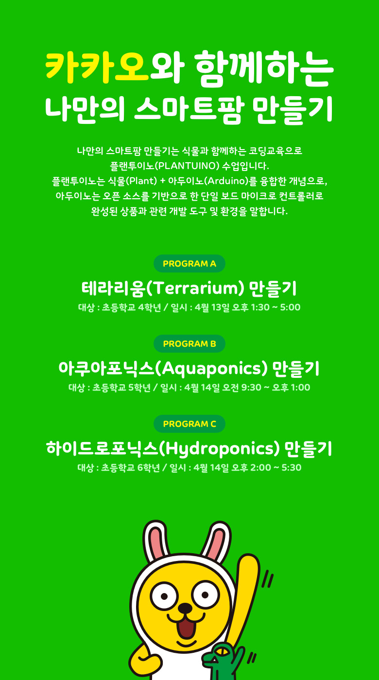 카카오 융합코딩교육 프로그램 '나만의 스마트팜 만들기' 참가자 모집
