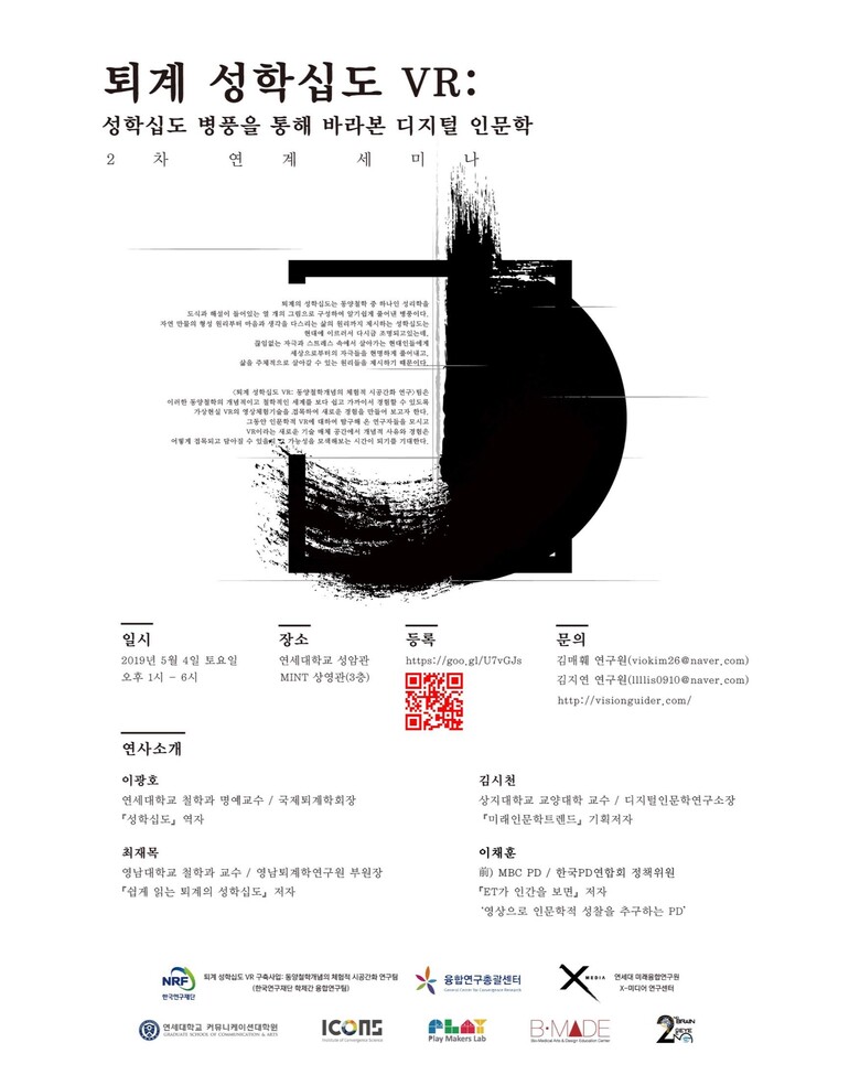 이에 따라 연세대 퇴계 성학십도 VR 융합연구팀(연구책임자 이현진 교수)이 5월 4일(토) 오후 1시 연세대학교 성암관 MINT 상영관에서 2차 연계 세미나를 개최한다.