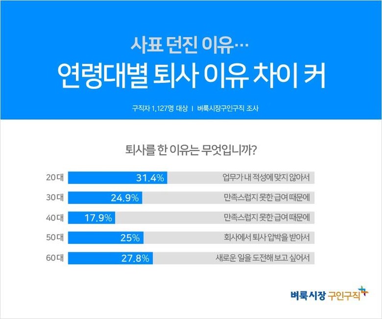 구직자들이 회사를 떠났던 이유는 연령대별로 많은 차이를 보이기도 했다.