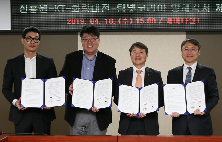 이날 협약식에는 KT 김봉균 Biz사업본부장, 대전진흥원 최경목 원장 직무대행, 화력대전 옥임식 대표 이사, 팀넷코리아 손현철 대표 이사 등 주요 관계자들이 참석했다.