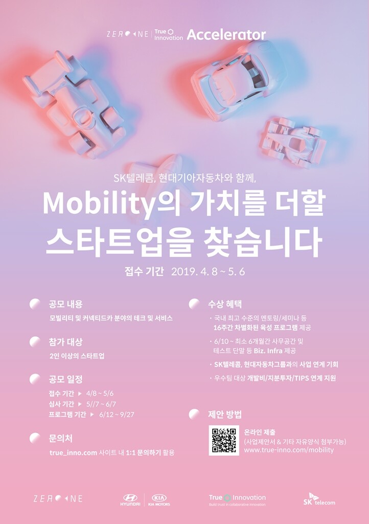 SK텔레콤(대표이사 사장 박정호)은 현대기아차와 모빌리티 및 커넥티드카 분야의 테크·서비스 스타트업을 선발해 육성·투자하는 제로원 트루이노베이션 엑셀러레이터(ZER01ne x True Innovation Accelerator) 프로그램을 시행한다고 16일 밝혔다.